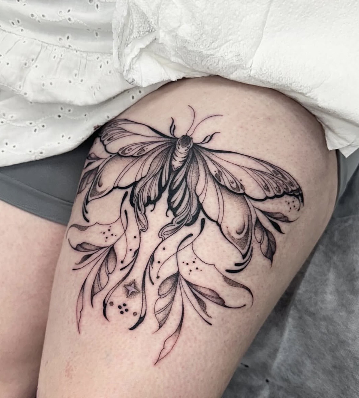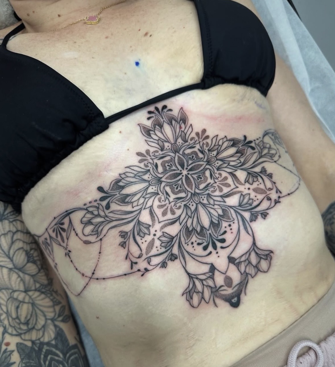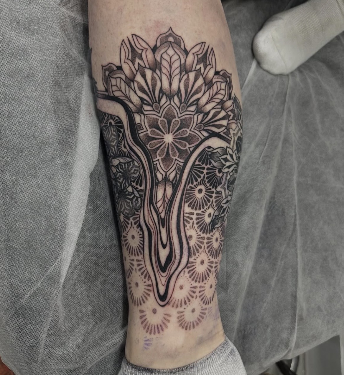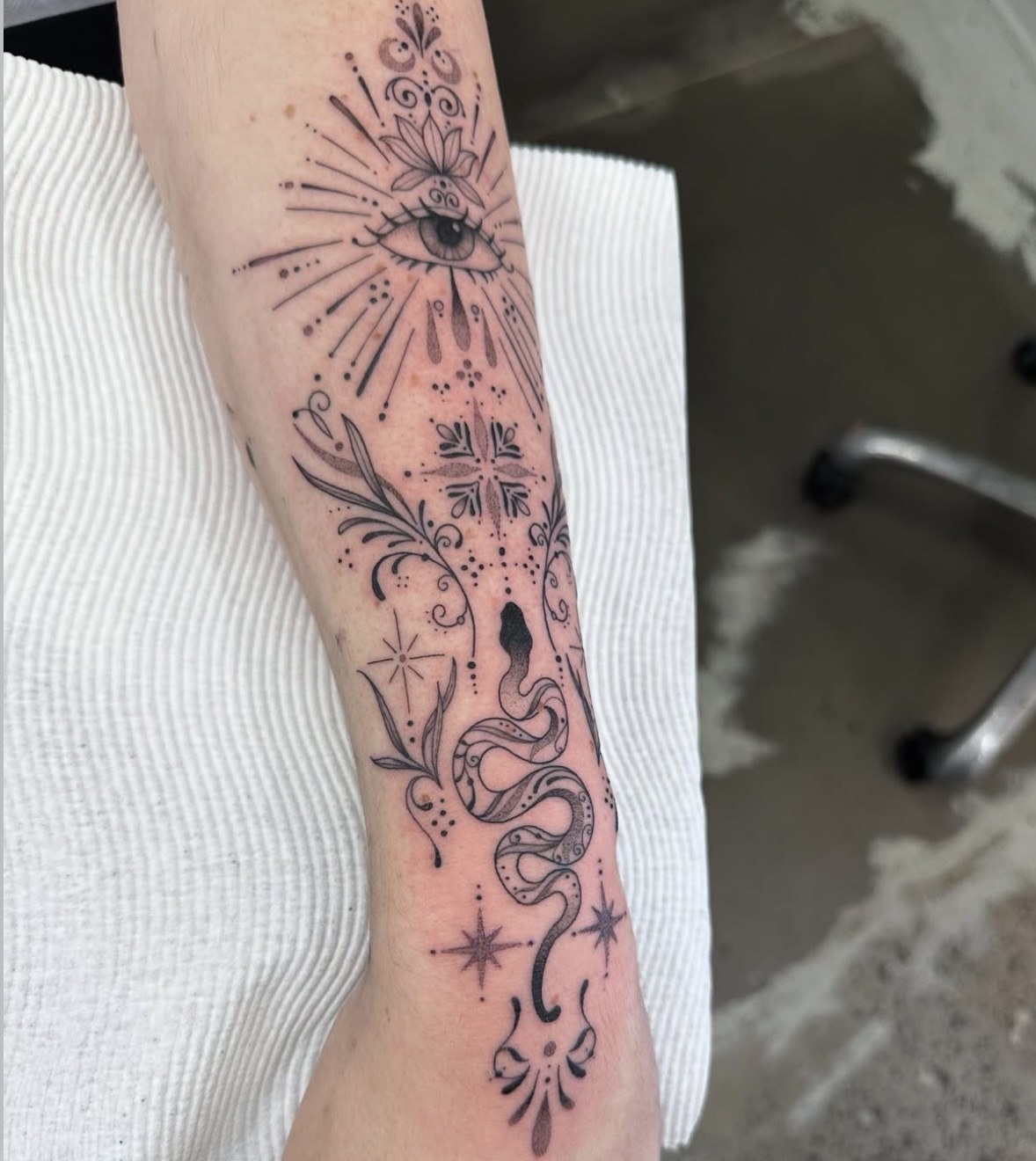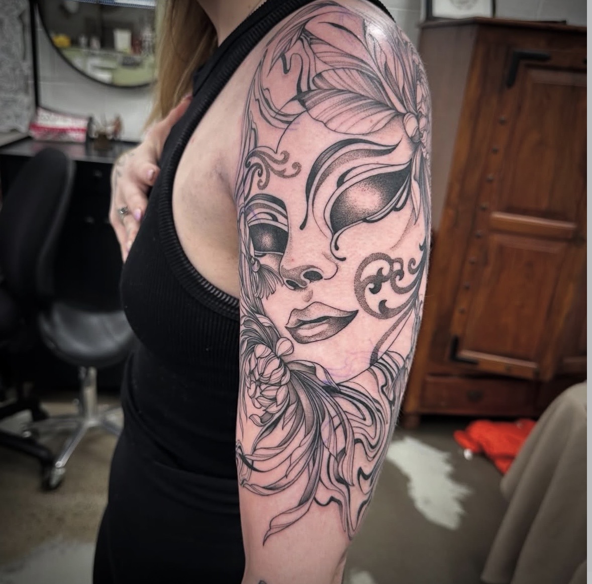 “I’ve been tattooing for 3 years, with a background as a freelance artist and over 6 years studying visual and tattoo art. I’ve always been passionate about drawing — filling sketchbooks since I was a kid — but my interest in tattooing really sparked in my final year of high school after seeing my sister’s growing collection. After graduating, I applied for art school with the goal of becoming a tattoo artist. What I love most about this career is how unique it is — working in a studio surrounded by like-minded creatives, constantly collaborating, learning and evolving. Like any art form, there’s always more to refine and explore, and I’m completely drawn to that ongoing growth.”