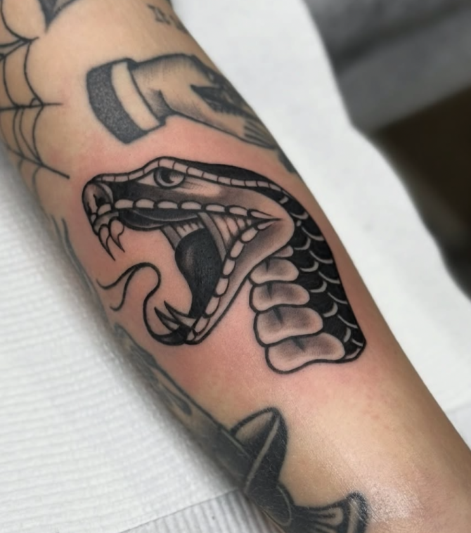 “I’ve been tattooing for around 15 years, specialising in Traditional and Neo-Traditional work, while also enjoying colour, illustrative, cartoon and dotwork styles. I started tattooing young — out of curiosity and a bit of rebellion — completely self-taught at first before committing properly to the craft. What I love most is that you never stop learning. There’s always something to refine, technically and creatively. Being able to communicate my ideas visually — and have someone connect with them enough to wear them for life — is something I’ll never take for granted"